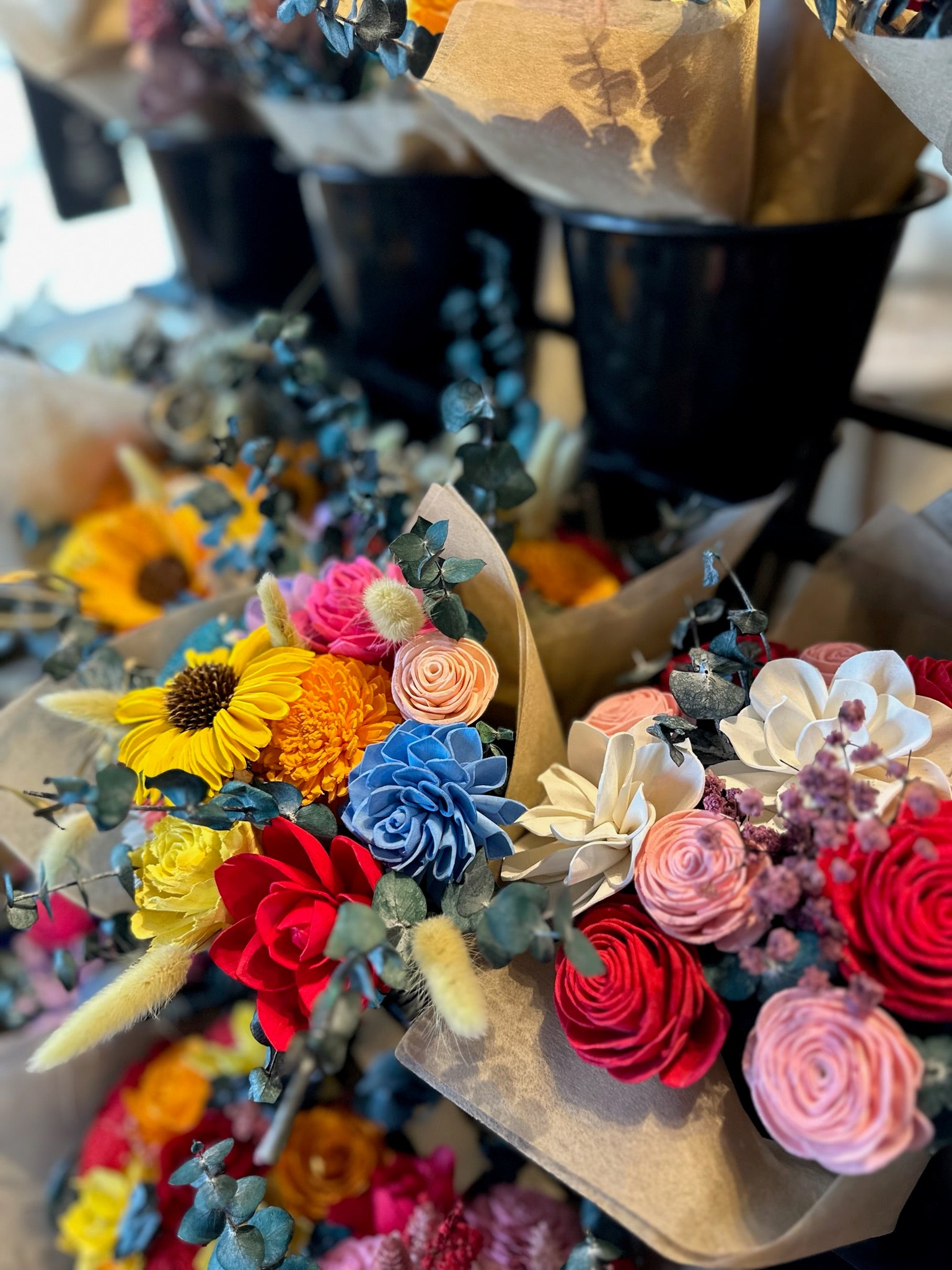 Looking for a gift for a holiday, birthday, anniversary, well wish, condolence, or just because? Our flowers are a unique gift because they are made to last! We also carry unique wares and gift baskets too!
