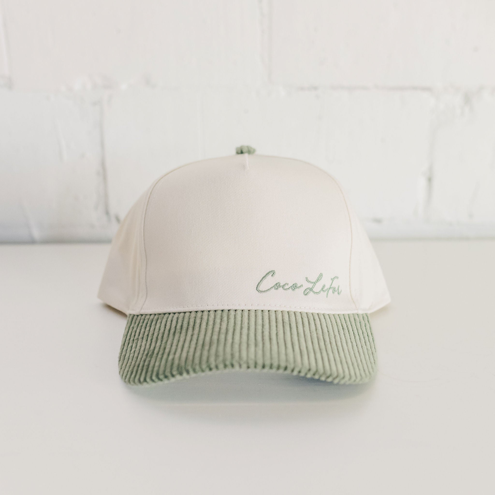 Coco Lefor Embroidered Hat -Sage Corduroy