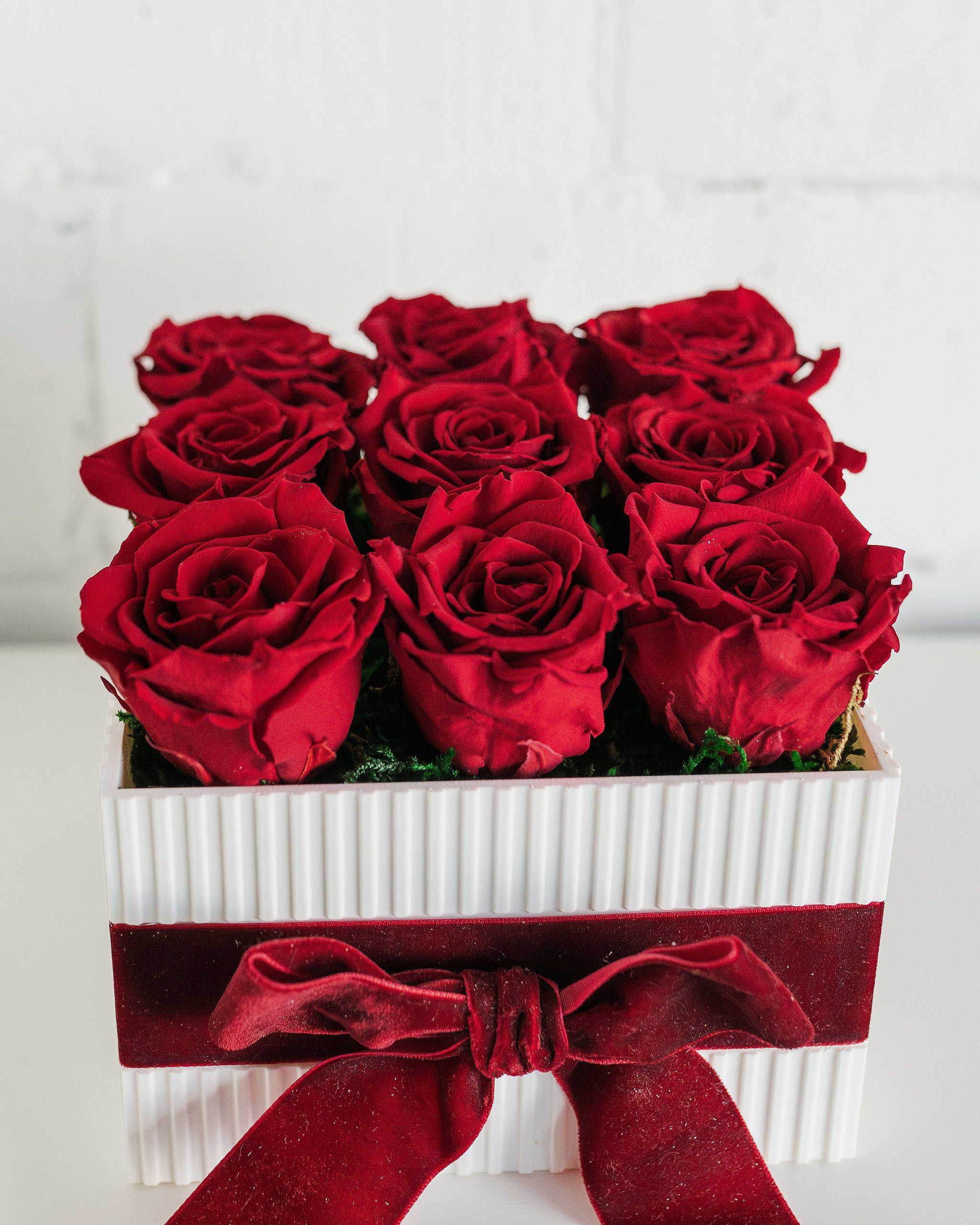 Love Box no.9 - 9 preserved real roses that come arranged in a ribbed box with a complimentary bow. A true display piece to show your love.
