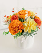 We use any combination of sola wood, preserved, dried, and real-touch (faux) flowers and foliage. This combination truly lets us unleash creativity both in color and design. Never throw away flowers again! Your flowers can last a lifetime with proper care. For care and FAQ click here: CARE & FAQ