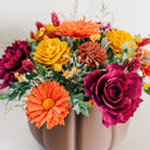 The arrangement pictured reflects our original design for this product. While we always follow the color palette, we may replace flowers and foliage depending on availability. Due to lighting when photos were taken and differences in screen appearances, products might appear lighter/darker or differ in color than actual physical products. Every arrangement is custom-made, and the placement of flowers may vary from the photos.