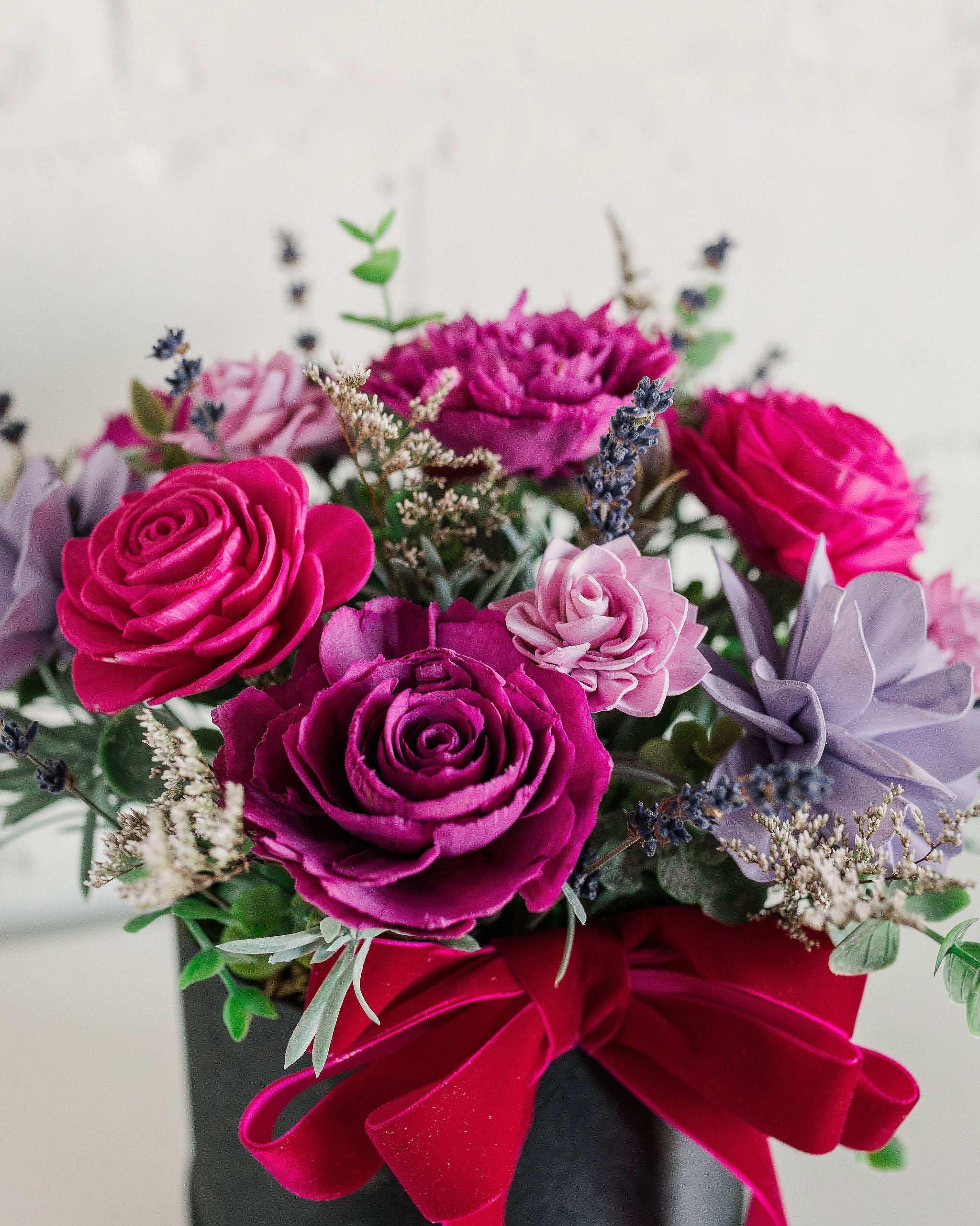 We use any combination of sola wood, preserved, dried, and real-touch (faux) flowers and foliage. This combination truly lets us unleash creativity both in color and design. Never throw away flowers again! Your flowers can last a lifetime with proper care. For care and FAQ click here: CARE & FAQ