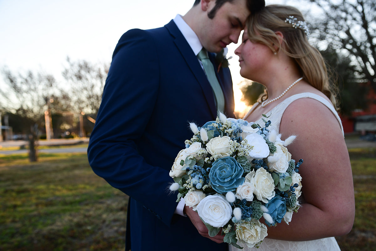 Since our flowers last, you can pick them up days or weeks before your big day. This is ideal for brides who get bridal photos ahead of time as they can have the same bouquet.