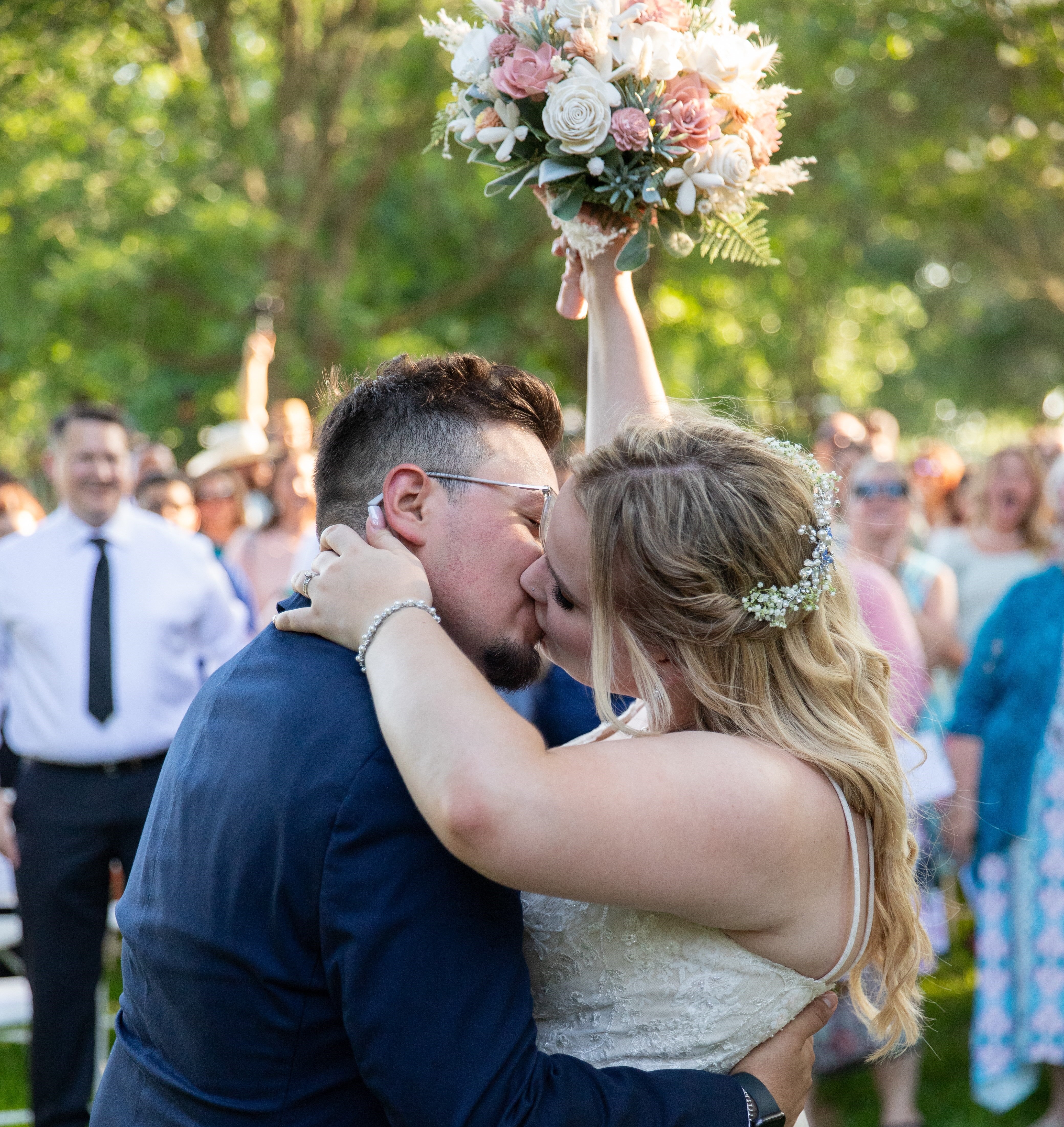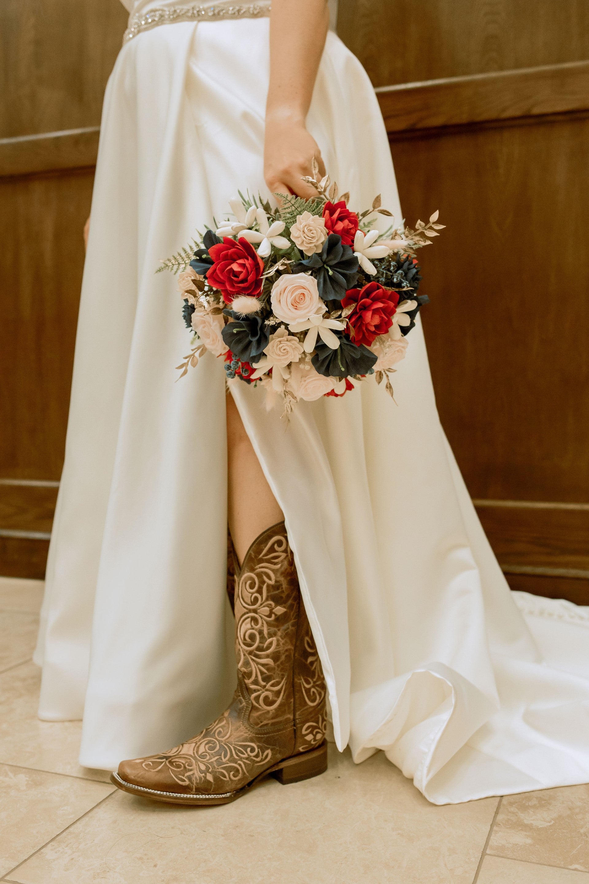 Our combination of wood, preserved, dried and real-touch foliage and flowers can last a very long time. Your bouquet is already a keepsake with no additional care.