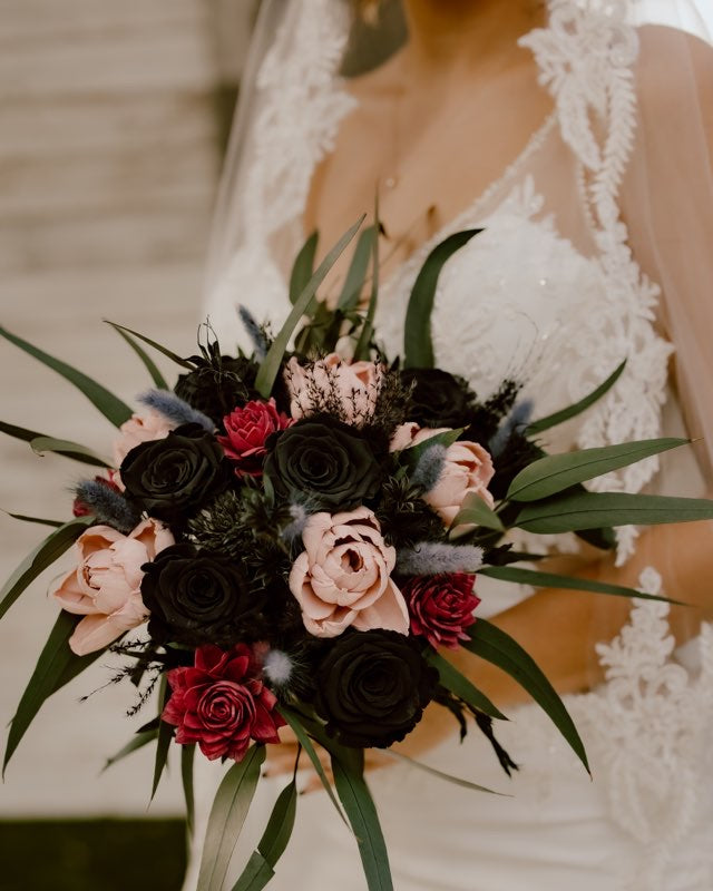 Our flowers are predominantly made from sola wood which is native to Southeast Asia. We also use preserved and dried florals and sometimes real-touch flowers and greenery. There are so many options that make our florals one-of-a-kind.